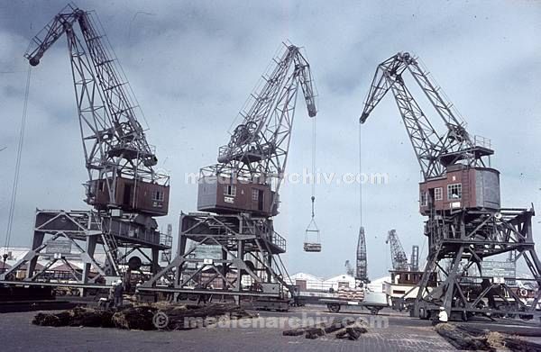 1968. Afrika. Maghreb. Königreich Marokko (Al-Mamlaka al-maghribiya; Royaume du Maroc, Kingdom of Morocco) Hafen. Kran. Kräne