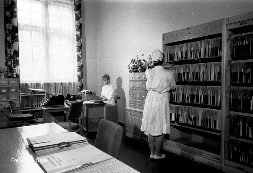 1958. Gesundheit / Medizin. DDR. Berlin. Pankow. Ortsteil Buch. Krankenhaus Buch. Schreibzimmer.