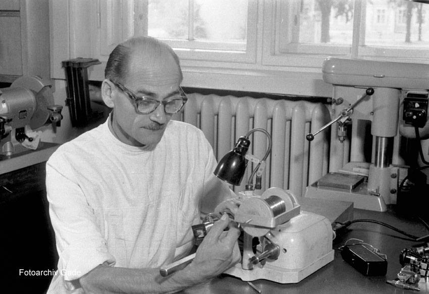 1958. Gesundheit / Medizin. DDR. Berlin. Pankow. Ortsteil: Buch. Krankenhaus Buch. Ellert in der Werkstatt.