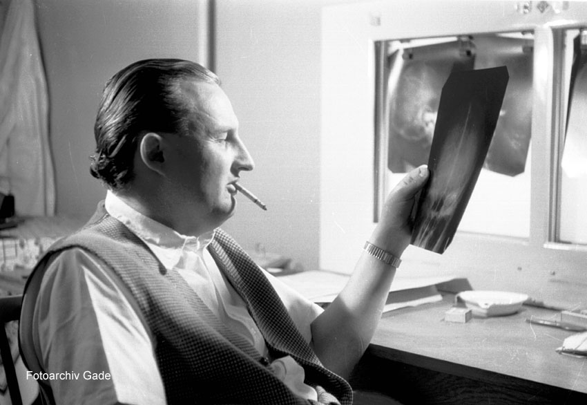 1958. Gesundheit. Medizin. DDR. Berlin. Pankow. Ortsteil: Buch. Krankenhaus Buch. Dr. Ilier mit Zigarette und Röntgenaufnahme.