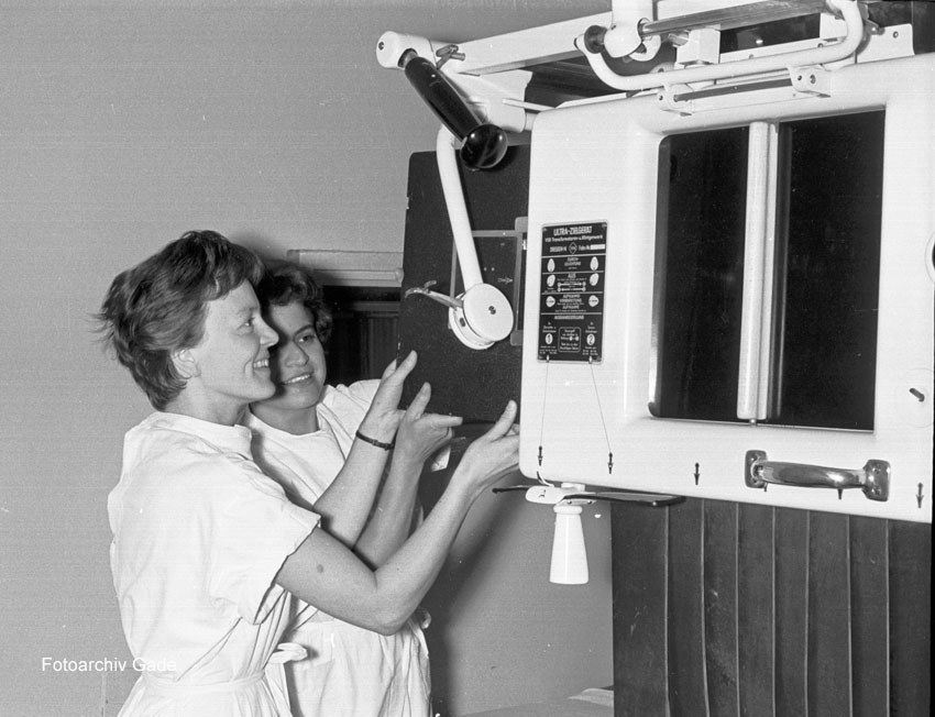 1958. Gesundheit / Medizin. DDR. Berlin. Pankow. Ortsteil: Buch. Krankenhaus Buch. Krankenschwestern mit Röntgenfilm