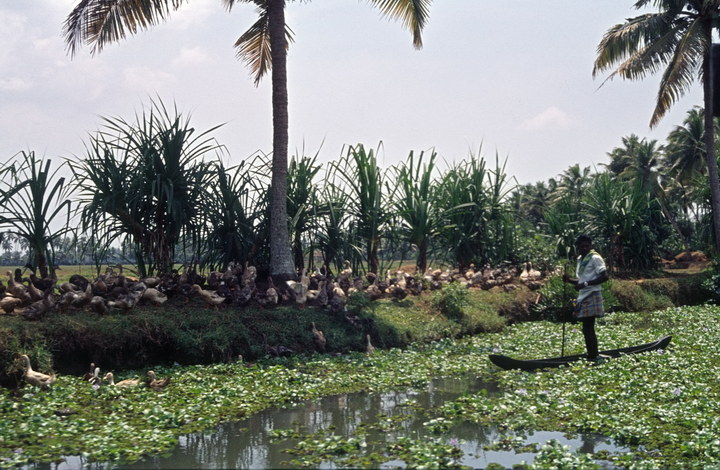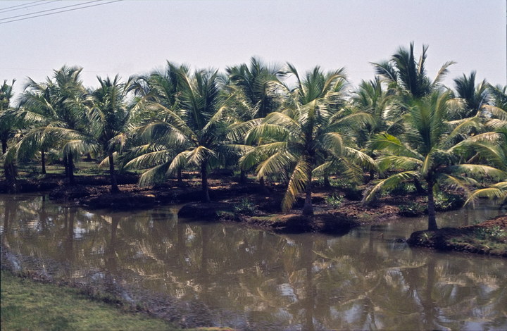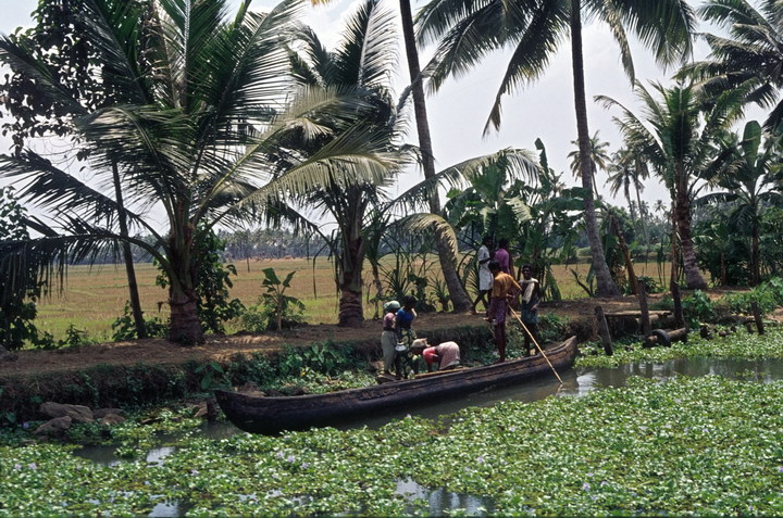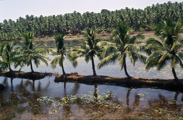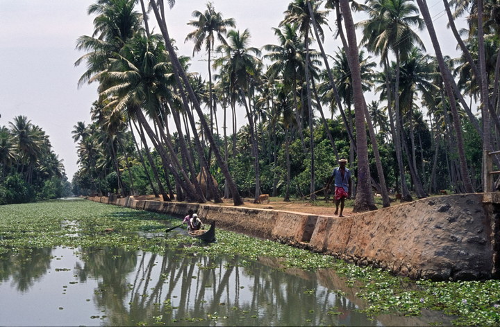 Kerala. Backwaters. Verzeigtes Wasserstraßennetz im Hinterland der Malabarküste.