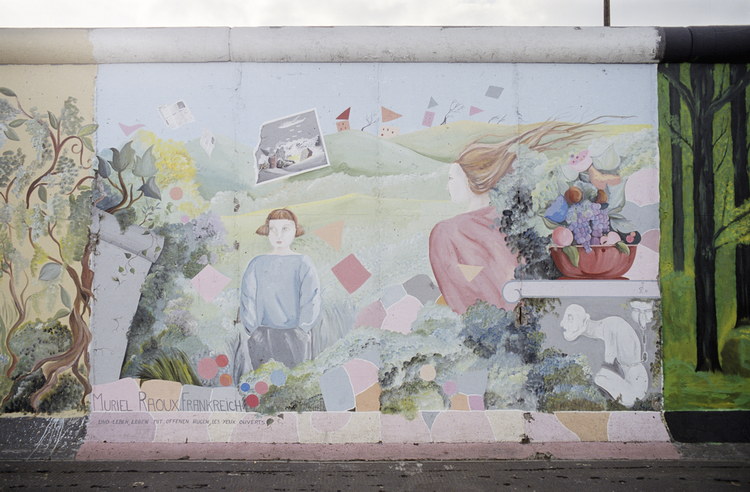 Oktober 1995. Berlin. Friedrichshain. East-Side-Gallery. Gemälde von Muriel Raoux