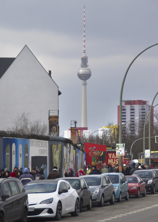 31. 3. 2013. Berlin. Friedrichshain. East-Side-Gallery. Mühlenstraße. Fernsehturm