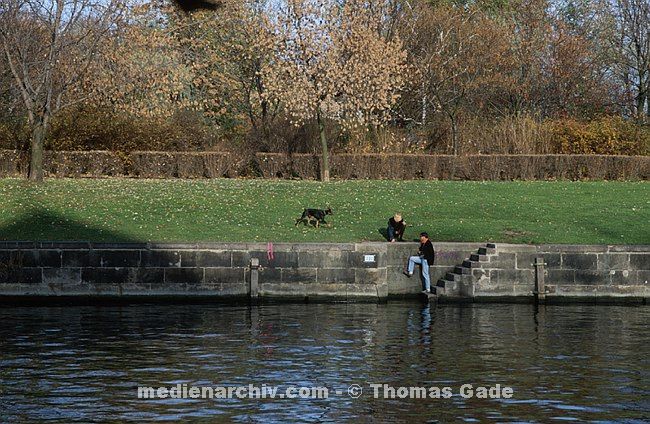August 1992. Berlin. Tiergarten. Moabit. Fluß / Fluss Spree.