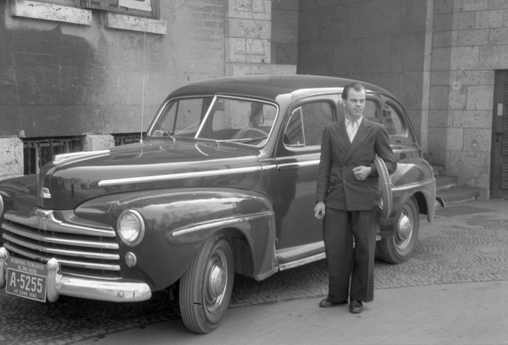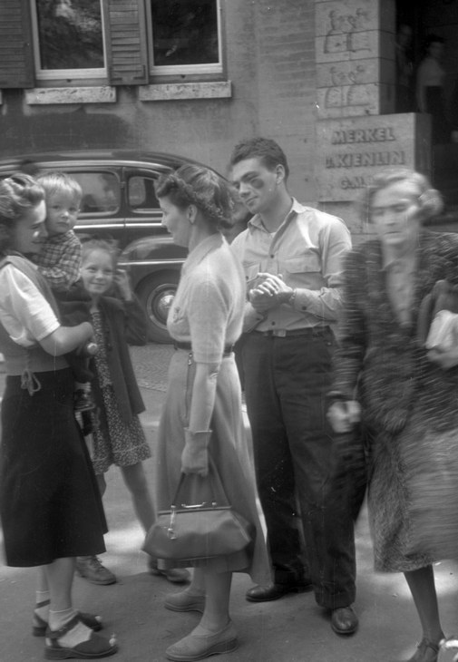 1950. Deutschland. Baden-Württemberg. Esslingen am Neckar. Merkel u. Kienlin G.M.B.H. IRO. International Tracing Service Headquarters. U.S. Zone Division. Mitarbeiterin. Frau an Zigarettenautomat