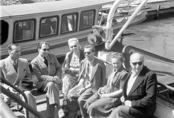 1950. Deutschland. Fluss Rhein. Menschen auf einem Schiff