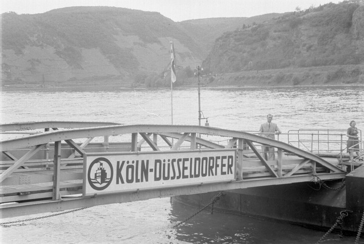 1950. Nordrhein-Westfalen. Köln-Düsseldorfer Rheinschifffahrt am Fluss Rhein