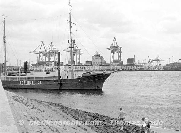 August 1989. Hamburg. Hamburger Hafen. Leuchtschiff Elbe 3.