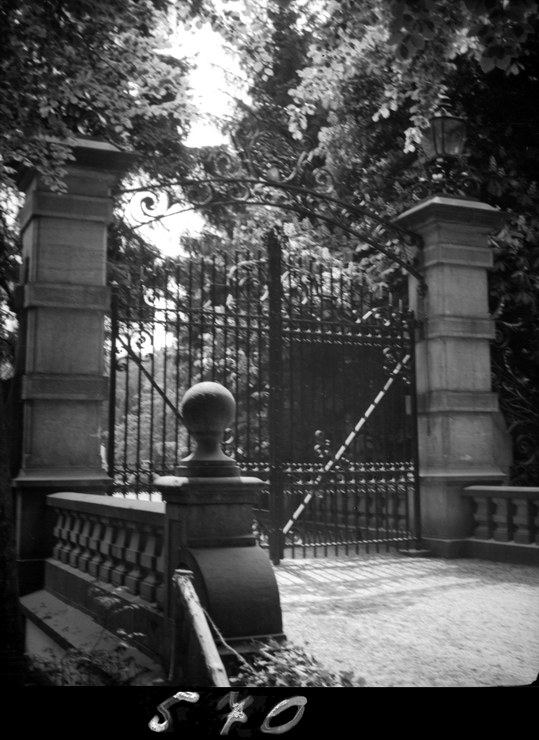 1939. Niederlande. Spakenburg. Sportfest - Volkstanz. Ein Gitter eines Wasserschlosses