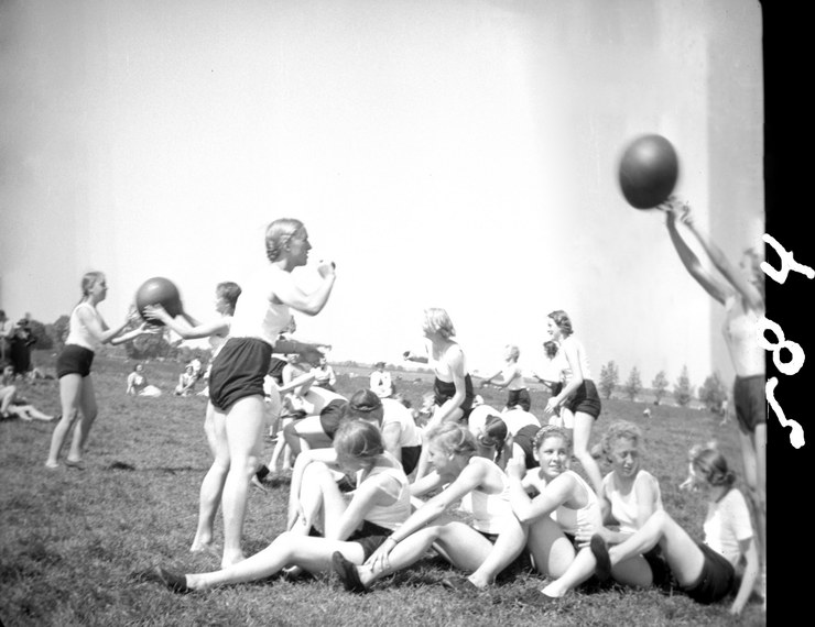 1939. Niederlande. Ammersfoort / Veluwe. Sportfest. Spiel mit Medizinball