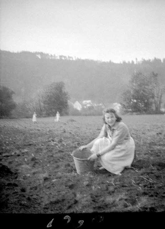 1941. Taferner. Kartoffelernte bei Taferner. Hochformat: Kartoffelnbuddeln