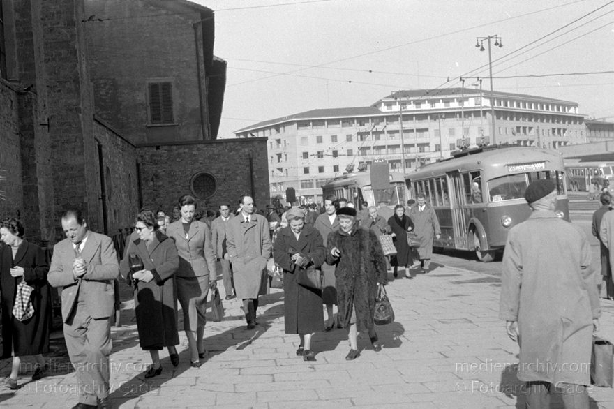 1950er. Italien. Toskana. Florenz. Italia. Toscana. Firenze. Italy. Tuscany. Florence. Autobus.