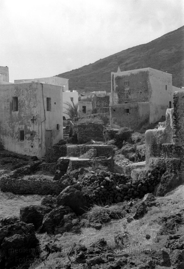 1950er. Italien. Liparische Inseln. Stromboli mit aktivem Vulkan. Italy. Aeolian Islands. Italia. Isola di Stromboli