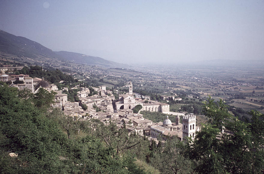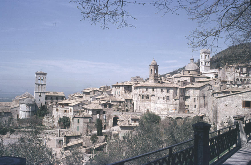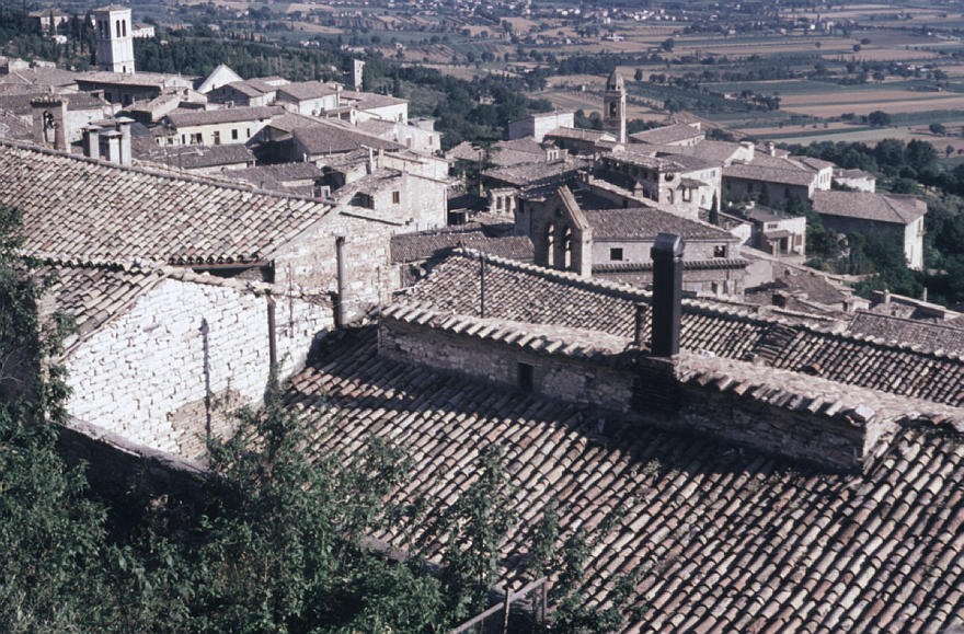 1975. Italien. Italy. Italia. Umbrien. Provinz Perugia. Assisi. Blick von der Burg - Italy. Umbria region. Province of Perugia. Assisi.