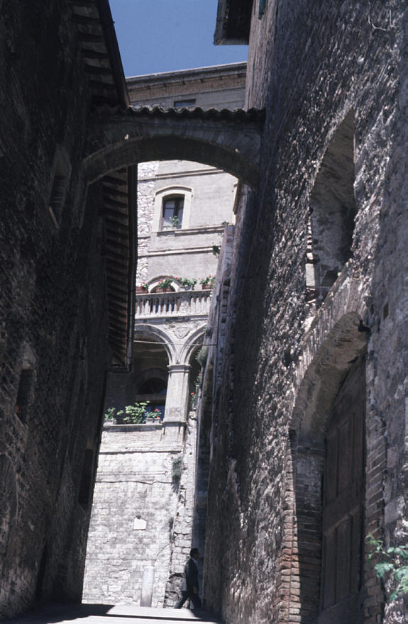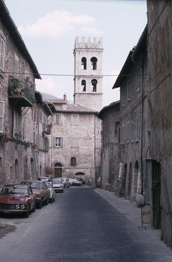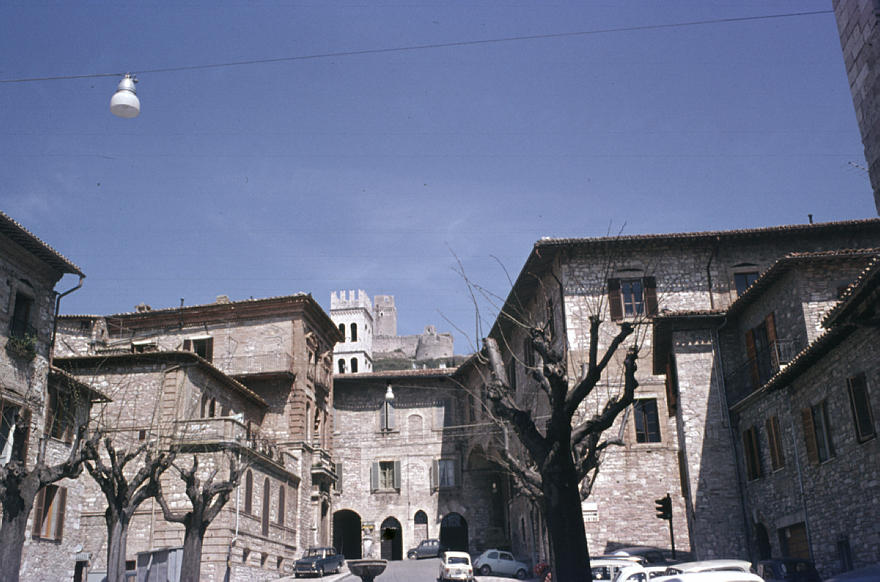 1975. Italien. Italy. Italia. Umbrien. Provinz Perugia. Assisi. Gasse und päpstliche Palast - Italy. Umbria region. Province of Perugia. Assisi.
