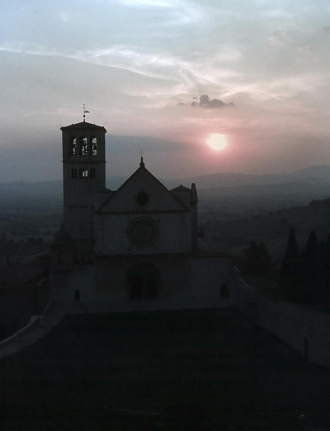 1975. Italien. Italy. Italia. Umbrien. Provinz Perugia. Assisi. Grab der heiligen Franz in der Krypta. Sonneuntergang. Italy. Umbria region. Province of Perugia. Assisi.