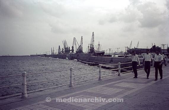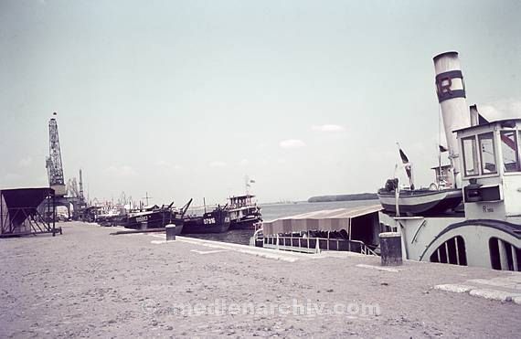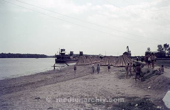 1960er. Rumanien. Romania. Schiffe am Ufer des Fluss Donau