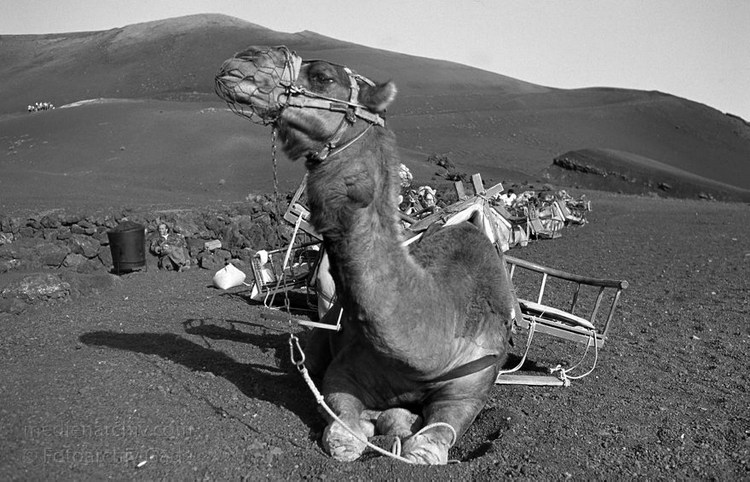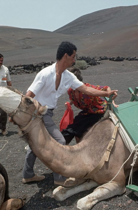 November 1994. Lanzarote. Kanarische Inseln. Spanien. Feuerberge - Nationalpark Timanfaya. Vulkane. Lava. Einige Bereiche der Montanas del Fuego sind nur mit Dromedarkarawanen zugänglich. Montañas del Fuego - Parque Nacional de Timanfaya - Spain. Canary Islands. Timanfaya National Park - Espana. Islas Canarias.