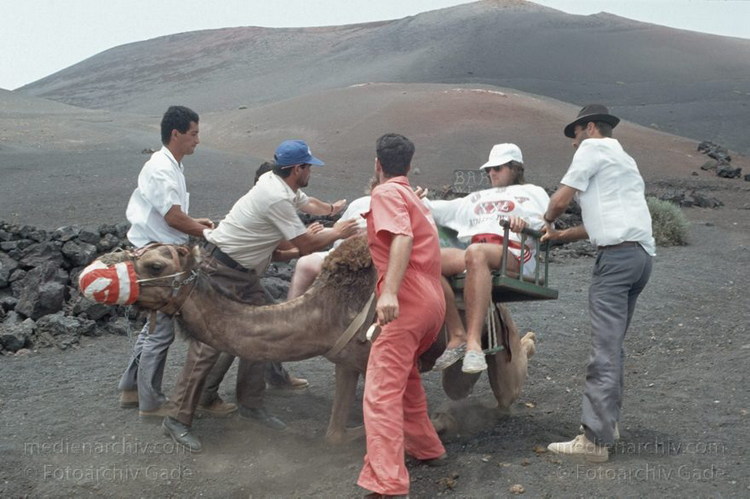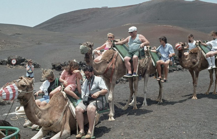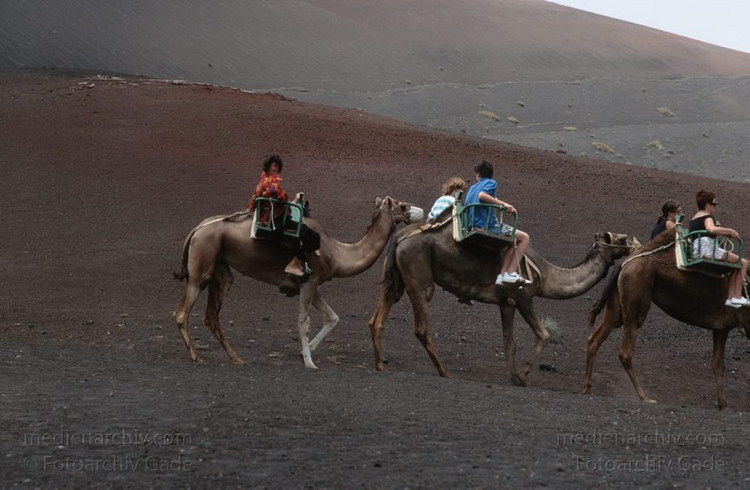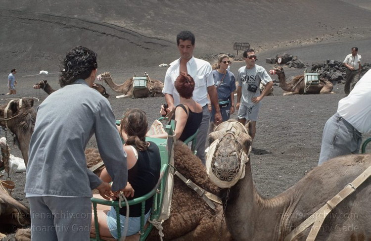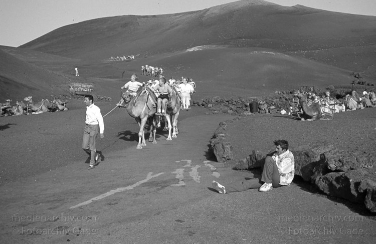 Juli 1994. Lanzarote. Kanarische Inseln. Spanien. Feuerberge - Nationalpark Timanfaya. Vulkane. Lava. Einige Bereiche der Montanas del Fuego sind nur mit Dromedarkarawanen zugänglich. Montañas del Fuego - Parque Nacional de Timanfaya - Spain. Canary Islands. Timanfaya National Park - Espana. Islas Canarias.