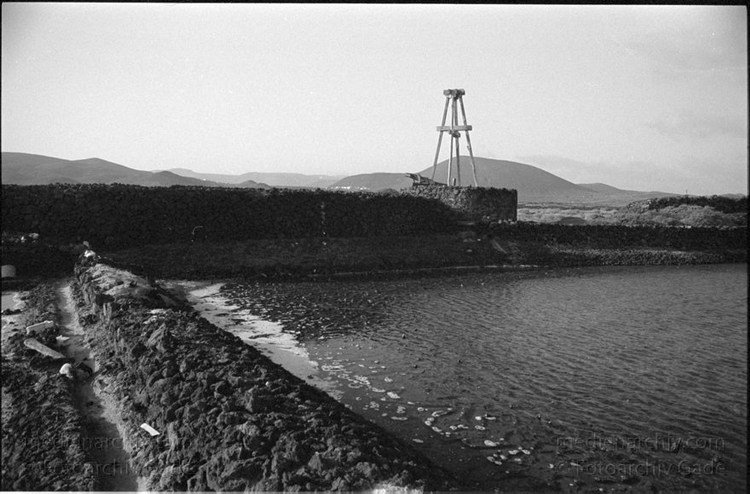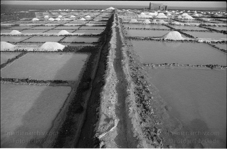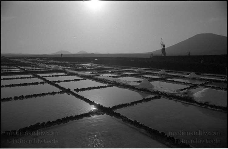 April 1995. Spanien. Kanarische Inseln. Lanzarote. Saline in Los Cocoteros. Meersalzgewinnung.