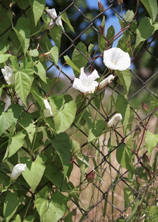 Juli 2001. Mecklenburg-Vorpommern. Fischland. Flora. Pflanzen. Kletter-Pflanze. Gewöhnliche Zaunwinde (Calystegia sepium). Familie: Windengewächse (Convolvulaceae)