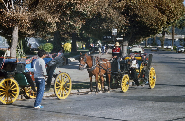 1981. Südamerika. Lateinamerika. Chile. Kutsche mit Pferden