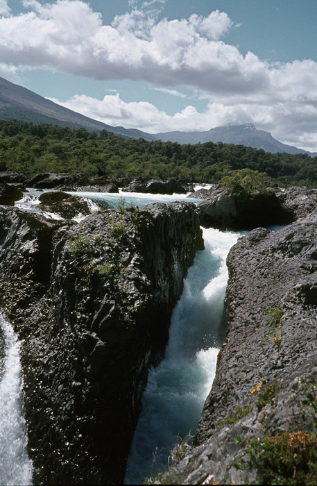 1981. Südamerika. Lateinamerika. Chile. Wasserfall