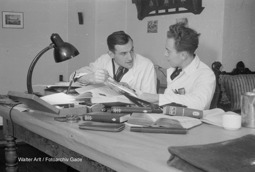 Hessen. Darmstadt. Zwei Studenten am Schreibtisch