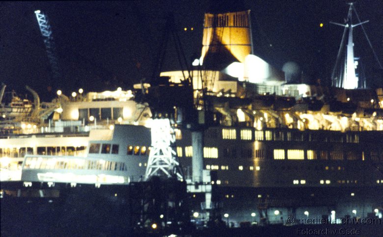 um 1979. Hamburger Hafen. Schiffe. Fluss Elbe. Nachtaufnahmen