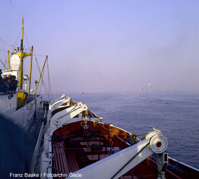 1960. United States of America. USA. Schiff auf dem Hudson River. Meer. Retungsboot