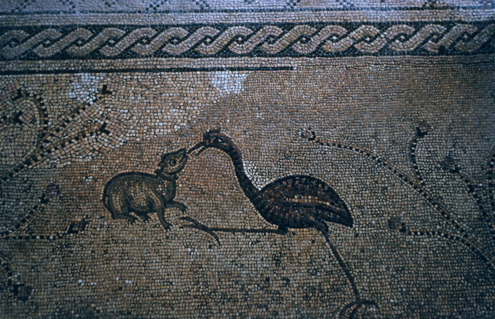 1968. Vorderasien. Nahost. Middle East. Israel. Tiberias. Kirche der Brotvermehrung, Tabhgah Mosaik (5. Jahrhundert) - Reiher und Hund