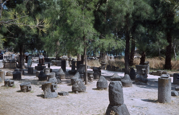 1968. Vorderasien. Nahost. Middle East. Israel. Capernaum. mehrere Bauelemente mit Leuchter. Stein mit Bundeslade